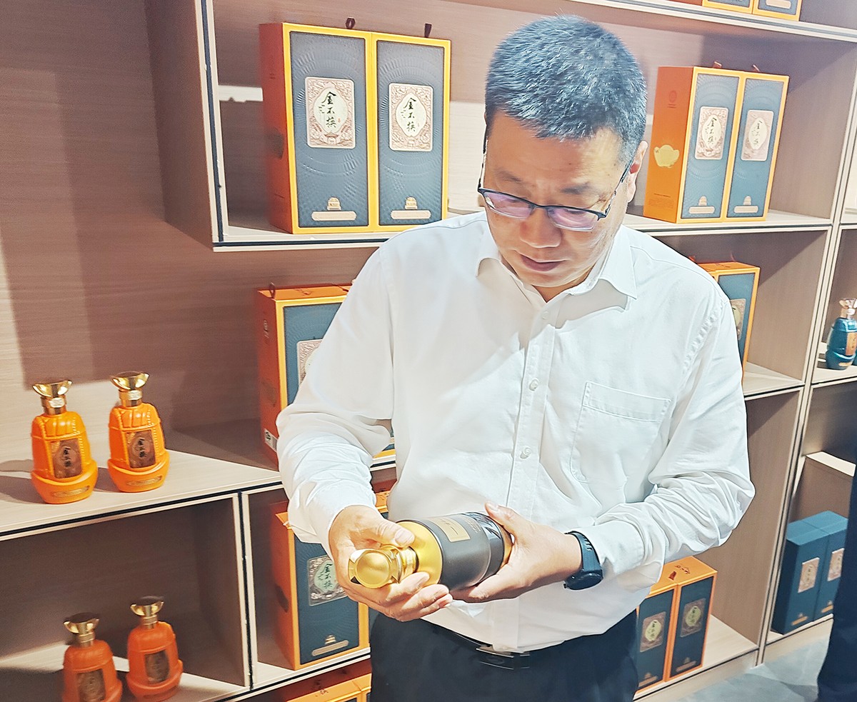 湯涌主席一行查看了金不換文化展示區(qū)、藏酒區(qū)、銷售展廳、明清窖池群和亳酒城市會客廳。金不換白酒集團(tuán)黨委書記、總裁支濤介紹了近階段企業(yè)生產(chǎn)、經(jīng)營情況和未來發(fā)展規(guī)劃。